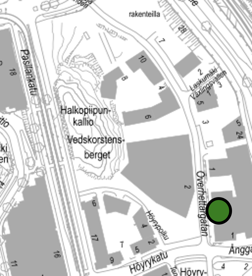 Keräyshuone palvelee ao. korttelia (Helsingin seudun opiskelija-asuntosäätiö).